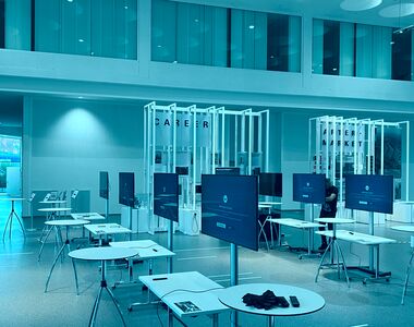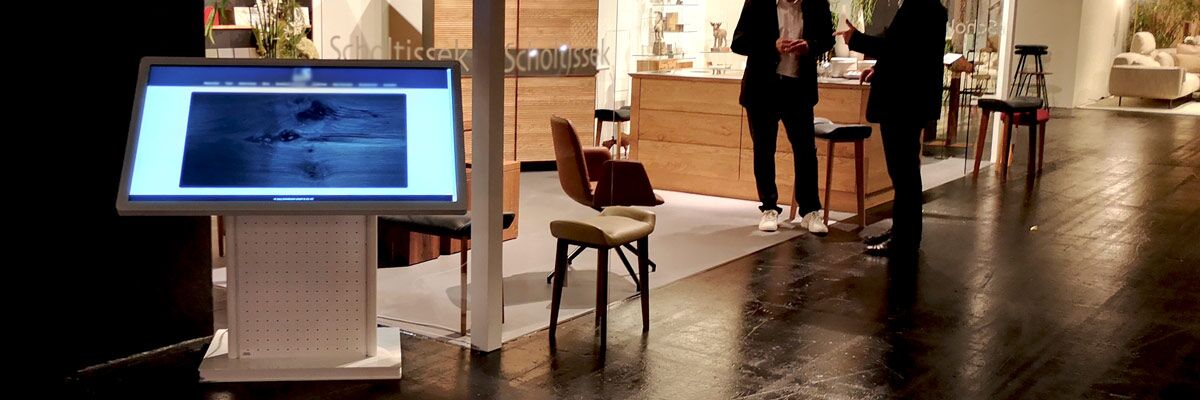 Stations that are lively with action arouse interest and draw visitors closer. Haptic stimuli that encourage your guests to participate turn your event into an experience that stays in their minds. We have a diverse selection of devices with touch functions, ranging from massive totems or touch-operated standing desks to displays or tablets.