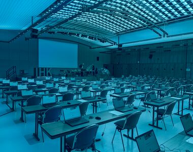 We assembled an LED wall for our customer in the beautiful darmstadtium — making for an impressive presentation area with guaranteed eye-catchers. We provided a projector, projection screen and notebooks in a separate meeting room for various workshops. The desktop background in the organiser’s design and the files for the workshops were installed uniformly on the notebooks in advance.